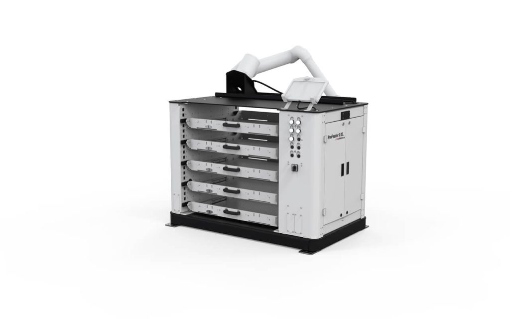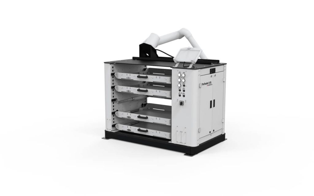 The Pro Feeder XL series stands out with its heavy carrying capacity and larger multi-drawer structure. Up to 5 drawers can be added to the system and the large loading area makes it possible for your large parts to work for long hours without an operator.